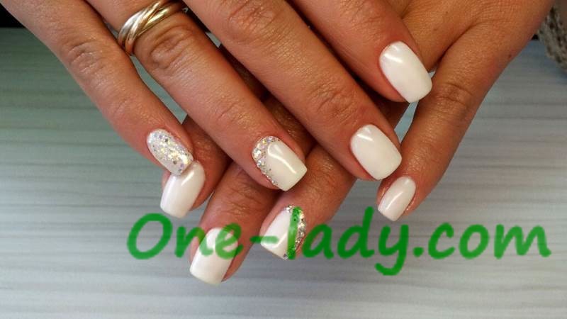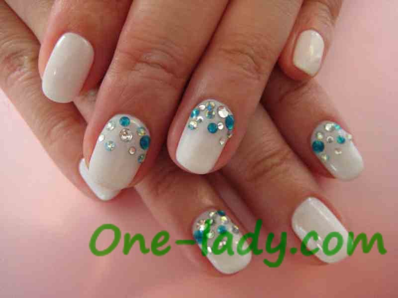 Маникюр со стразами на коротких ногтях