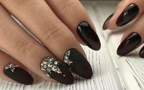 Черный маникюр со стразами (фото и варианты дизайна ниже) подходит для таких форм ногтей: