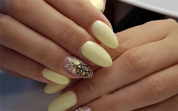 Дизайн маникюра со стразами на овальных ногтях