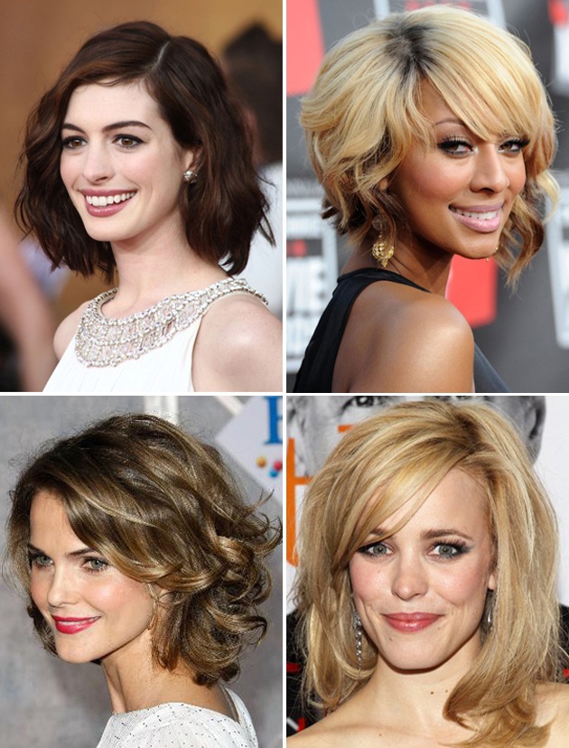 Обладательницы круглого лица имеют примерно одинаковые размеры по длине и ширине. Косая челка с удлиненными прядями – лучший вариант для этой формы лица, длина до плеч самая оптимальная. Подойдет многослойная стрижка на средние волосы. Косой пробор визуально удлиняет лицо, но не стоит делать его по центру, как и ровную челку