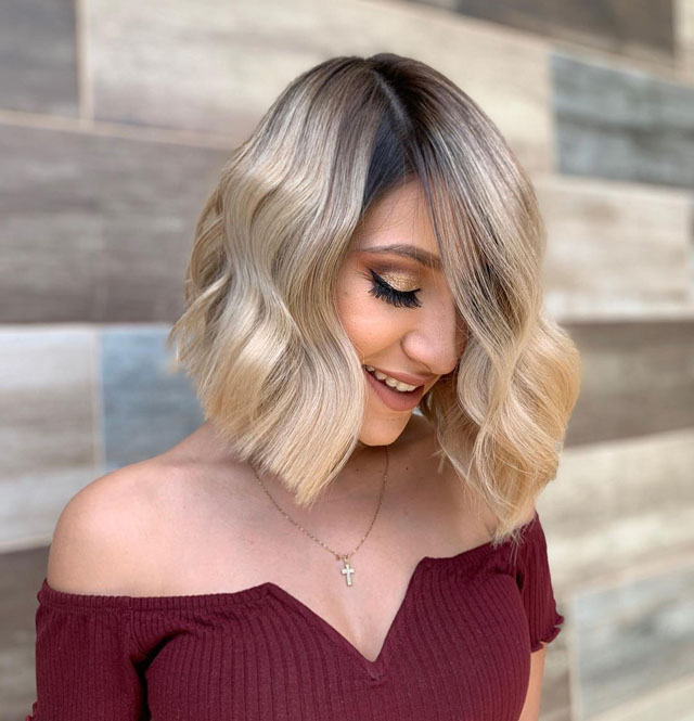 - Из вариантов окрашивания стоит выбрать мелирование, шатуш или бэбилайтс — визуально укладка будет казаться еще пышнее.