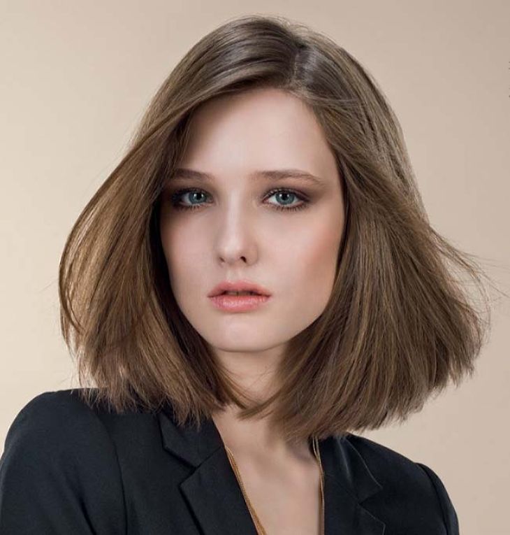 Создать такую прическу возможно на любой длине. Сделать ровный срез девушкам по силам самостоятельно дома либо в салоне. За счет него получается дополнительный объем. Но подобный вариант не подходит круглолицым женщинам. Потому что лицо будет казаться круглее.
