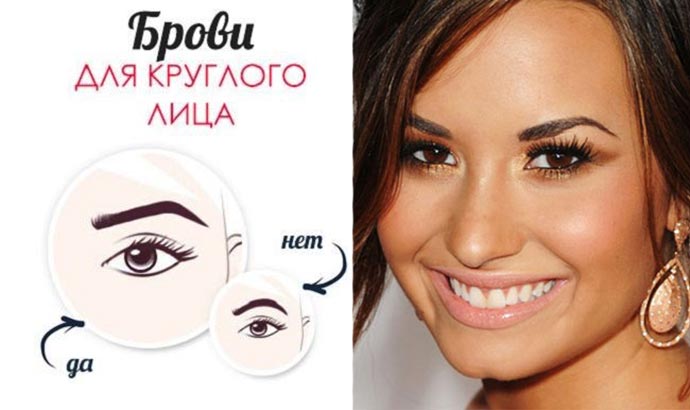 Правильна форма бровей с заостренным кончиком, четкими линиями и высоким изгибом – совершенна для обладательниц круглого лица.
