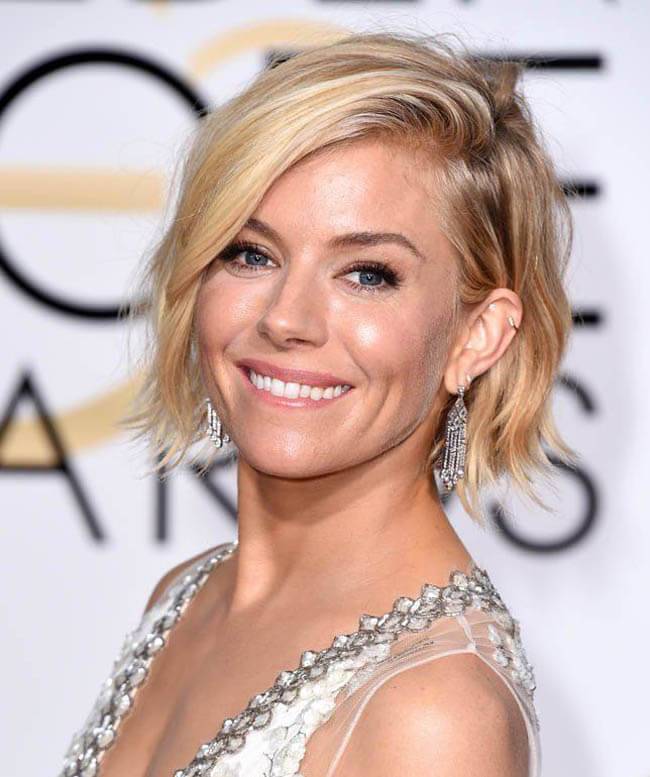 Отвлекает внимание от заостренного подбородка и широких скул любая, кроме длинной прямой, чёлка — дугообразная, длинная косая, короткая прямая.