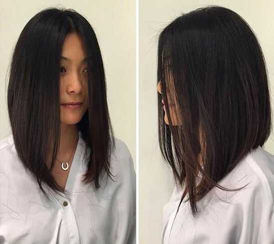 Удлиненное каре (коротко сзади и плавный переход по диагонали к более длинному переду) смотрится очень стильно и современно. В данный момент оно находится на пике своей популярности, и завоевало признание многих женщин.