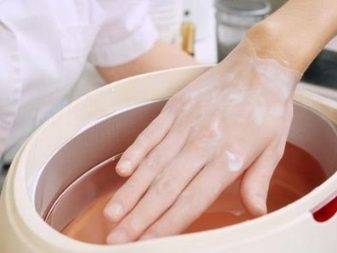 - Для соляной ванночки используют ложку морской соли и 250 граммов теплой воды. В воде нужно растворить соль и опустить руки в жидкость, на 15 минут. Так же на практике испробовано добавление в эту ванночку и других питательных веществ — эфирных масел, витаминов.