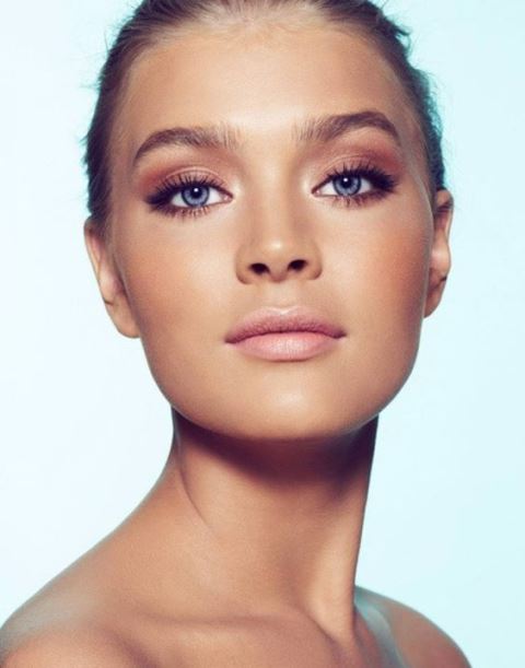 Румяна в мейкапе для голубых глаз должны быть едва заметными, почти прозрачными