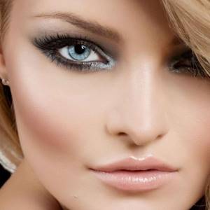 Темные оттенки – это ни в коем случае не черные, не шоколадные и не выглядящие как синяки темно-фиолетовые! Для эффектного выделения светлого взгляда используйте деликатные сливовые тона и серо-коричневые. Все границы наложения светлых, средних и темных теней должны быть тщательно и аккуратно растушеваны. Макияж для голубых глаз не прощает небрежности.