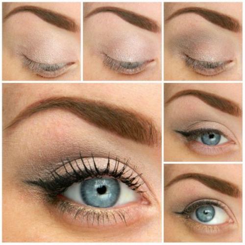 Пошаговый макияж для голубых глаз со светлыми тенями