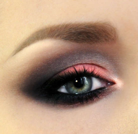 - требуется накрасить металлический глубокий пепельный цвет над границей сгиба большого века;
