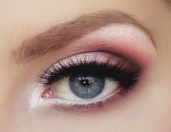 - наносим матовые светло-розовые тени и аккуратно растушевываем все границы цветов непосредственно на середину века;