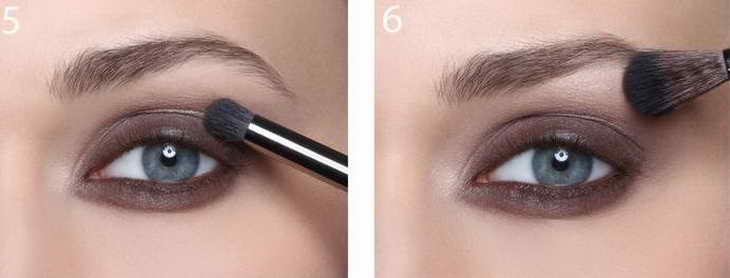 - Затемните складку века, используя коричневые и графитовые оттенки, как показано на фото.