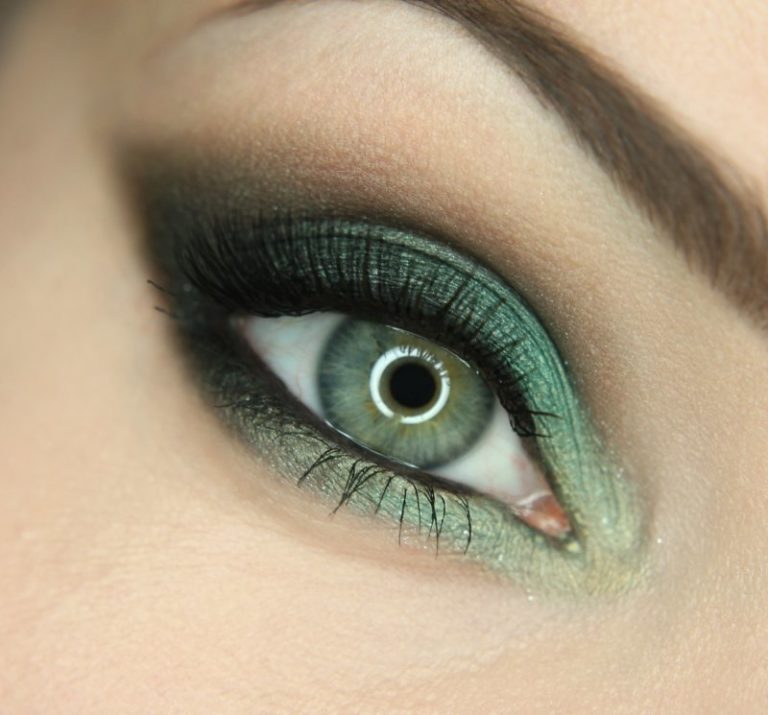 - Серые глаза с зеленым отливом выгодно смотрятся в комбинации с зеленоватыми тенями. При этом подводка выбирается темно-салатового или изумрудного цвета.