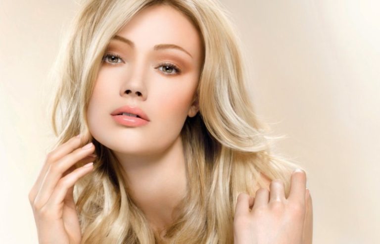 Макияж для блондинок с серо-голубыми глазами и нежной светлой кожей будет выглядеть очень натурально при правильном подборе тонального средства. База под мейкап необходима для получения более стойкого результата.