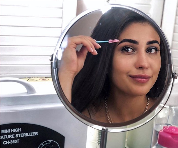 - Расчесать брови и придать им нужную форму.