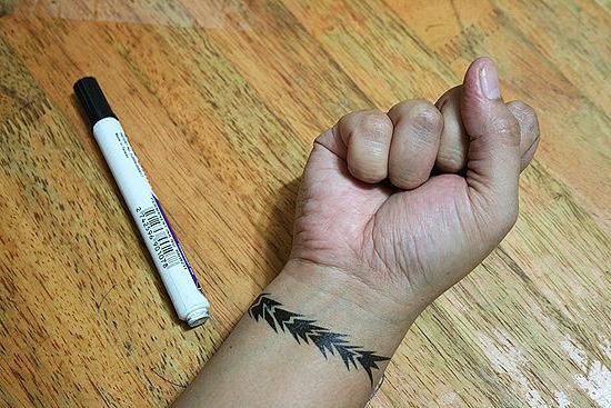 Приложите трафарет к руке, посмотрите, устраивает ли вас размер. Чтобы эта основа не смещалась, прикрепите ее к коже при помощи скотча. Для прокрашивания рисунка вы можете использовать хну, маркер, гелевую ручку. Некоторые делают такую тату даже при помощи лака для ногтей. Если затем еще раз захотите нанести такой же рисунок, то можете использовать данный трафарет повторно.