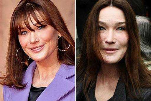 Итало-французская топ-модель, композитор, поэт-песенник и певица, бывшая первая леди Франции, в погоне за молодостью изменила лицо в не наилучшую сторону. Чрезмерное увлечение пластикой показывает, что много – это не всегда хорошо и как не надо делать.