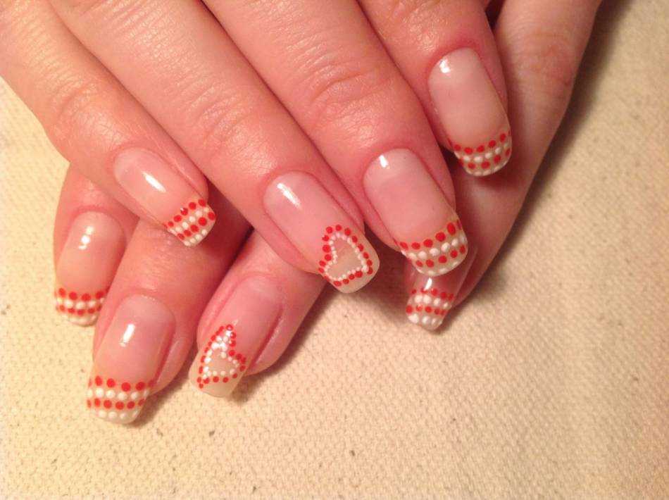 Данный дизайн ногтей дотсом станет хорошим вариантом для офисного стиля или мероприятия, требующего строгого образа. Вам понадобится лак для ногтей белого оттенка и ярко красного цвета, а также финишное покрытие и, конечно же, дотс.