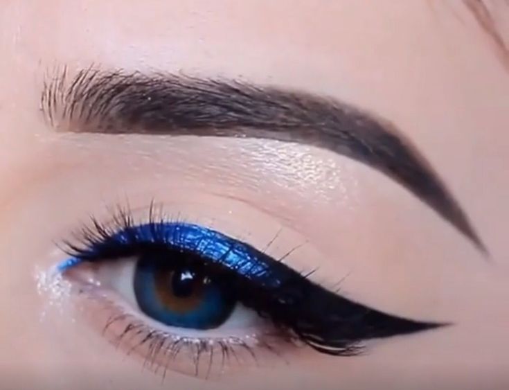 - Цветные стрелкиЕсли вам не нравится классический вариант использования коричневого или черного карандаша при нанесении стрелок, выберите себе любой другой понравившийся цвет и сочетайте его с основой. Для этого нарисуйте тонкую линию черным лайнером, после чего обведите ее большой голубой, розовой или фиолетовой стрелкой. Сделать глаза более яркими и выразительными помогут подводка, тени и тушь одного цвета.