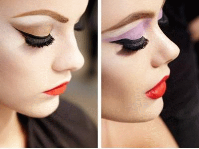 Такой вариант чаще используют не для создания самостоятельной линии на веке, а для ее «тени» другого цвета – например, в ярком макияже сиреневых тонов черную стрелку может оттенять сиреневая линия, проведенная чуть выше основной. Перед нанесением теней и обводки обязательно обезжирьте веко и нанесите на него специальную основу, если хотите сохранить макияж надолго.