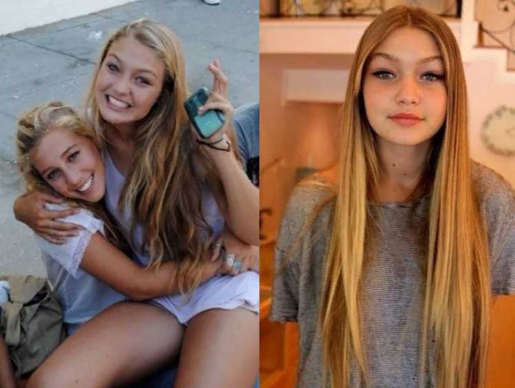 Здесь Джиджи Хадид 19 лет и она похожа на обычного подростка, которого случайно сфотографировали. Волосы приобрели более светлый оттенок.