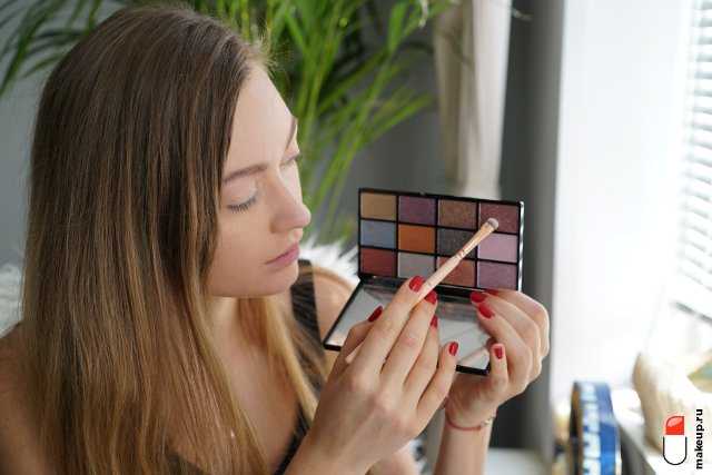 Затем возьмите более темный коричнево-розовый перламутровый оттенок и нанесите ближе к внешнему уголку, а непосредственно вешний уголок затемните блестящим шоколадным цветом, чтобы получить красивый градиент.