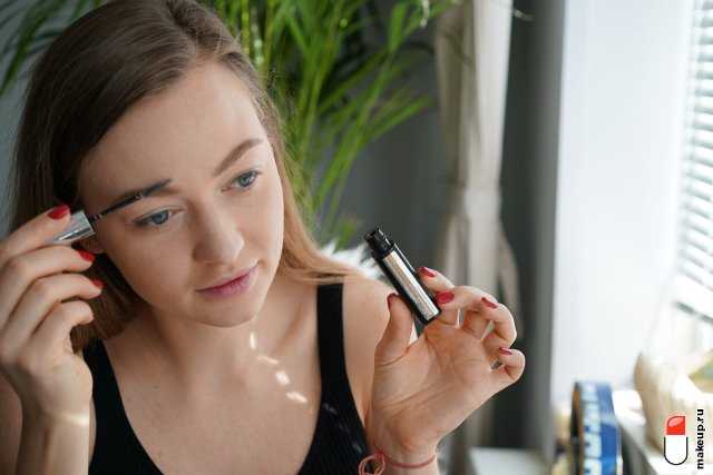 Причешите волоски и уложите их наверх (это одна из главных фишек Джиджи) с помощью оттеночного геля для бровей с фиброчастицами в составе. Это средство сделает брови визуально густыми.