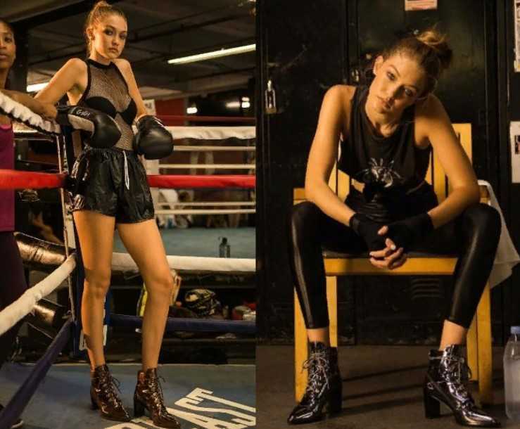 Несколько лет назад модель стала звездой новой рекламной кампании известного обувного бренда Stuart Weitzman. На фото в рекламе Джиджи позировала на ринге в боксерских перчатках.