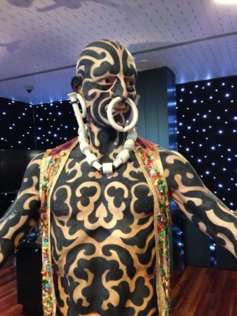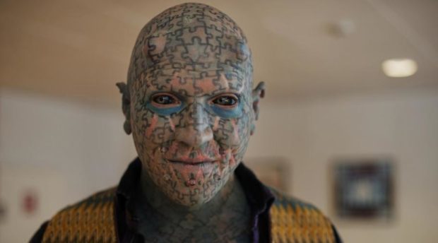 Неизвестно, является ли Пол Лоуренс любителем паззлов, но если вы бросите на него хотя бы один взгляд, то решите, что он сходит по ним с ума: тело шпагоглотателя, для которого вполне нормально просверлить электродрелью собственную ноздрю, покрыто синими головоломками. Татуировки человека по прозвищу Загадка являются работой более 200 тату-мастеров, а однажды над его татуировками одновременно работали 23 человека.