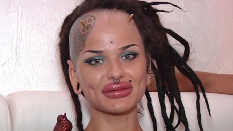 Примечательно, но губы девушки со столь удивительной внешностью смоделированы не острым скальпелем хирурга, а многочисленными силиконовыми инъекциями. Первую «закачку» девушка произвела еще в возрасте 17 лет. В последующем через каждые 2-3 месяца она вновь и вновь увеличивала размер. Сегодня число «уколов красоты» перевалило за отметку в 100. Кристину не страшит, что такие огромные порции силикона нанесут непоправимый вред мягким тканям и коже.