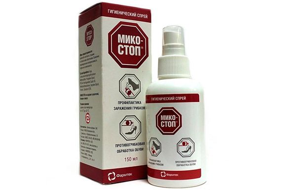 Микостоп спрей (активный компонент – молочная кислота) предназначен для лечения и профилактики грибковых поражений на стопах, но используется и для обработки обуви. Спрей распыляют внутри обуви. Препарат эффективен против всех видов грибков.