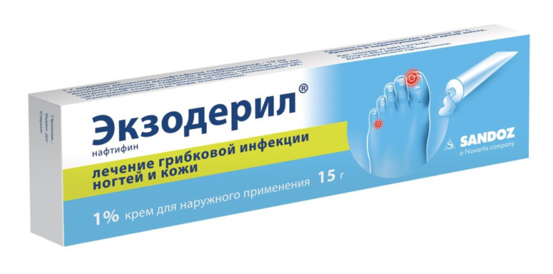 Крем Экзодерил белого цвета, имеет густую консистенцию, расфасован в тубы по 15, 30 г. В средстве содержится 1% активного вещества нафтифина гидрохлорида. Препарат используется при грибке ногтей и кожных покровов. Производитель – .