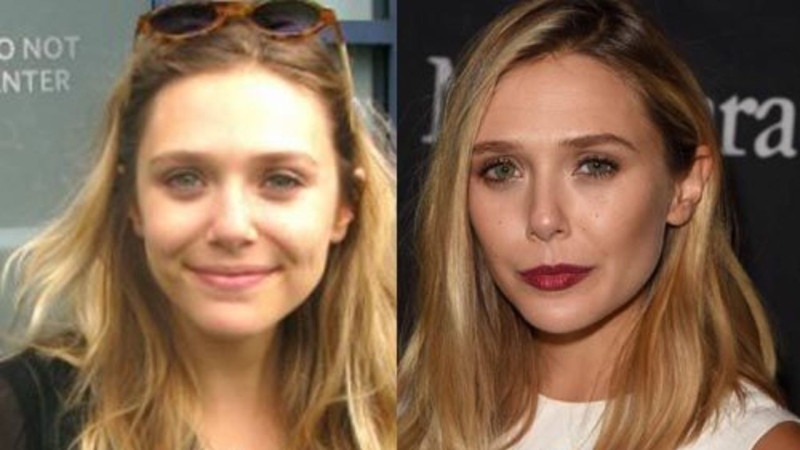 Elizabeth Olsen before and after alleged nose job plastic surgery.Image Source: Pinterest