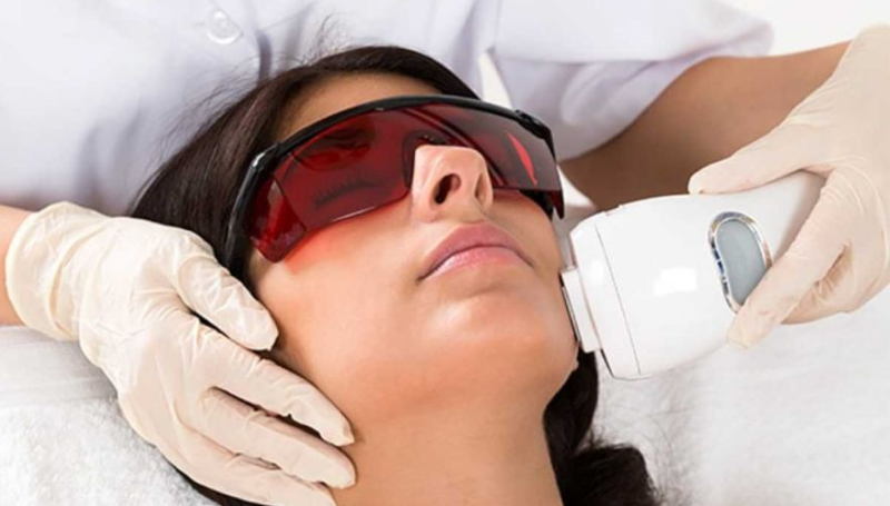 Лазерная эпиляция усиков специальным аппаратом для косметических процедур.