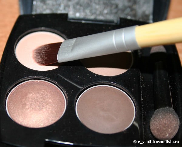 Приступаем к макияжу глаз. На все подвижное веко и под бровь я наношу оттенок №1 из палетки True Colour от Avon – mocha latte, выравнивая тон века.