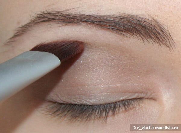 Тот же оттенок наношу обозначая складку и растушевываю в сторону брови, до отсутствия четкой границы.