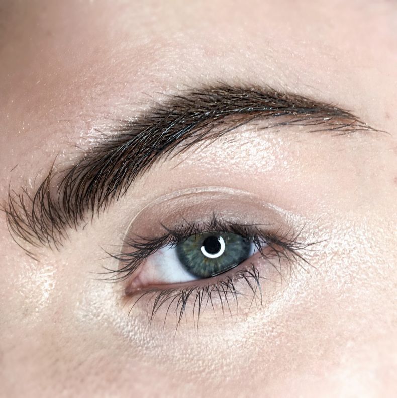 Карандаш или тени для бровей выбираем по принципу естественного оттенка или на тон светлее. Пробелы заполняем прорисовкой волосков короткими отрывочными движениями. После расчесываем брови щеточкой, чтобы они выглядели аккуратно и натурально.