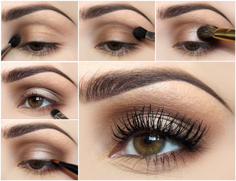 На внешний уголок глаза наносятся тени темных оттенков, а на внутренний угол и места под бровью более светлые. Желательно использовать тени таких оттенков как ореховый, молочный шоколад, айвори, персиковый в зависимости от цветотипа внешности. Самое главное — нужно хорошо растушевать тени, чтобы не было видно переходов и границ.