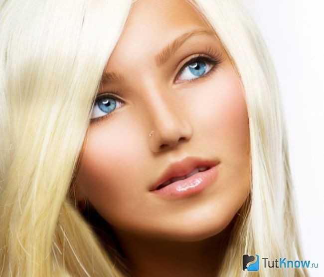 - Глаза. Выразительные глаза не нуждаются в обработке. Светлые ресницы можно слегка подкрасить тушью коричневого или серого оттенка. Близко посаженные глаза смотрятся гармонично, если нанести тени глубокого персикового или серо-коричневого оттенка на внешние уголки глаз.