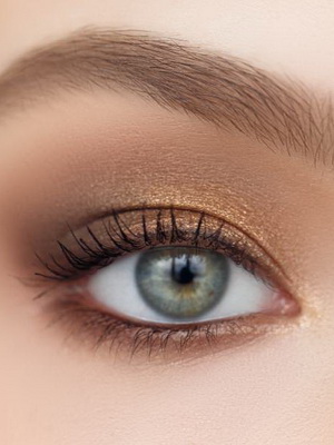 - Тени более тёмные, светло-шоколадные, оливковые и серые, накладываются ближе к основанию ресниц и растушёвываются затем наискось к внешнему уголку глаз.