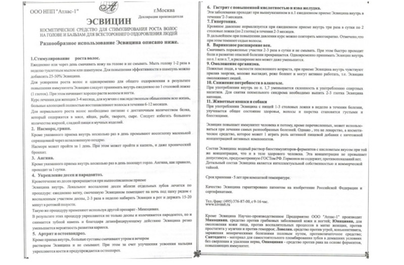 Инструкция по применению Эсвицина гласит, что в жидкости отсутствуют гормональные добавки, но все остальные компоненты направлены на стимуляцию обменных веществ выработку белков, которые необходимы для роста волосяных луковиц. Производителем заявлен огромный список показаний, среди которых выделяют следующее: