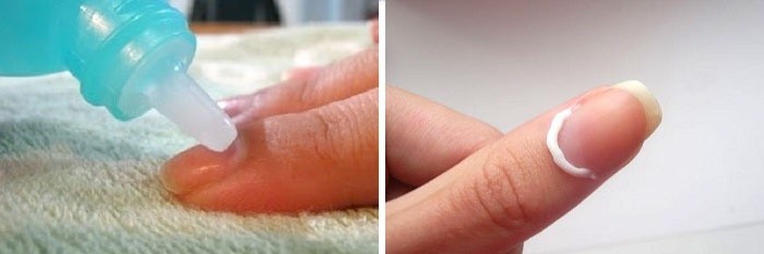 - Во время проведения маникюра необходимо делать ванночки для рук и перед отодвиганием кутикулы наносить на нее увлажняющее средство, или же пользоваться ремовером. Это средство для удаления кутикулы.