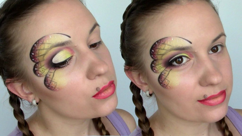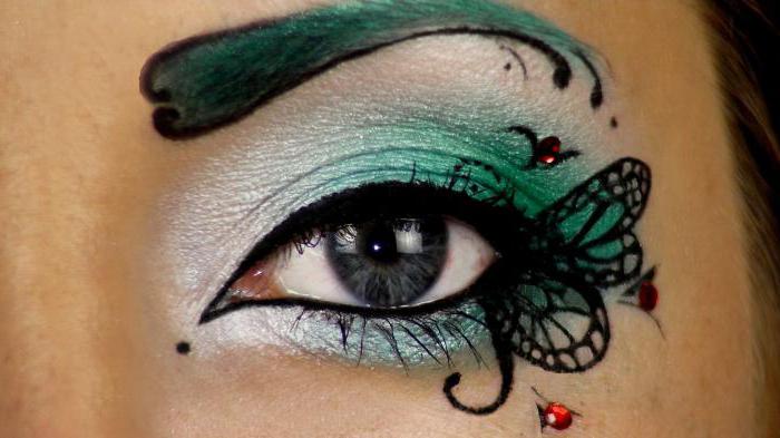 Бабочка является нежным и воздушным созданием, может прекрасно украсить любой создаваемый имидж. Крылья бабочки могут ниспадать на щеки, обрамлять глаза, покрывать мелкой вереницей линию скул или бровей.