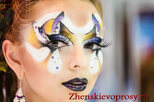 Фантазийный макияж не подойдет для ежедневного выполнения, ведь он предназначается только для вечеринок, театральных или сценических выступлений, клубов, конкурсов красоты, выставок. Согласитесь, если вы придете в супермаркет за покупками, а у вас на лице будет нарисовано 3D изображение звездной галактики, то недоуменных взглядов в таком случае просто не избежать.