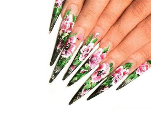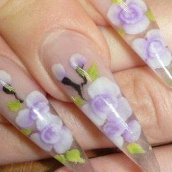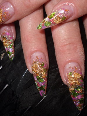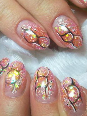 Как мы уже упоминали, длина ногтя в данном случае не важна, поэтому даже на коротких наращенных ногтях можно выложить оригинальные рисунки: объемные изображения рыбок, водорослей, камушков, замков, кораблей, цветов, ракушек, птиц и зверей, украшенные стразами, блестками, песком, кружевом. Покрытые аквариумным стеклом, акрилом или гелем, их просто невозможно повредить, в отличие от объемного дизайна.