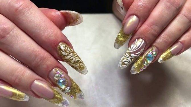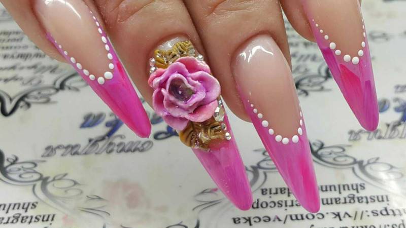 Для такого декора требуется большой слой геля, поэтому актуально применять подобные украшения на нарощенных ногтях или на основе типс.