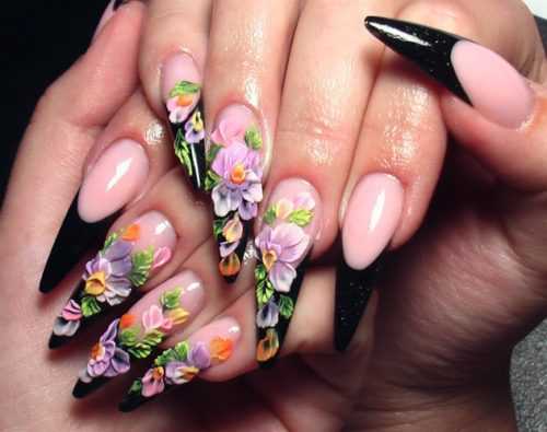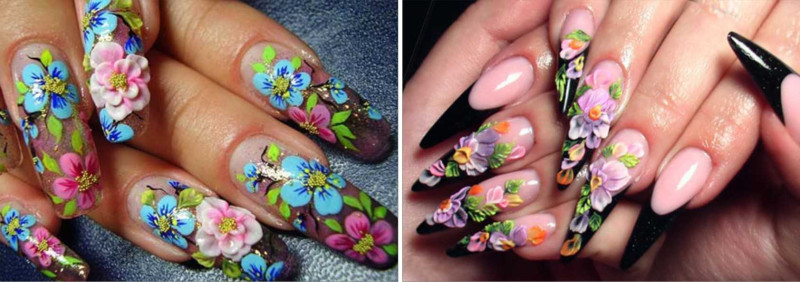 Чтобы рельефный нейл-арт выглядел завершенным, его часто дополняют рисунками на ногтях – получается красиво и стильно.