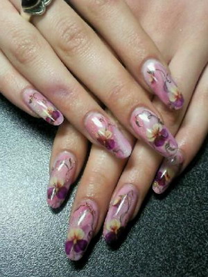 В зависимости от материала, на который нанесено изображение чего-либо, потребуется заливка гелем разной толщины. К примеру, бумажная или виниловая основа дает приличную толщину и их лучше использовать на искусственных ногтях, полиэтиленовая пленка с рисунком запросто может использоваться на любых ноготках, так как не сможет сделать ноготок толще.