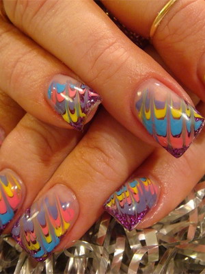 Другой вариант: на одном отдельно взятом ногте можно создать картину, украсить ее цветным песком, бульонками (мелкими цветными шариками), блестками, капельками краски. Можно полностью все ногти покрыть в художественном беспорядке разноцветными картинками. Все равно будет очень красиво, свежо, празднично, ярко.