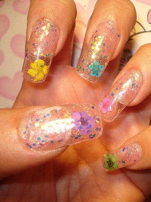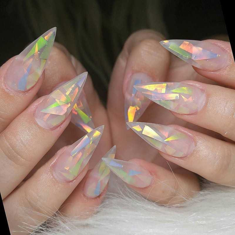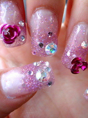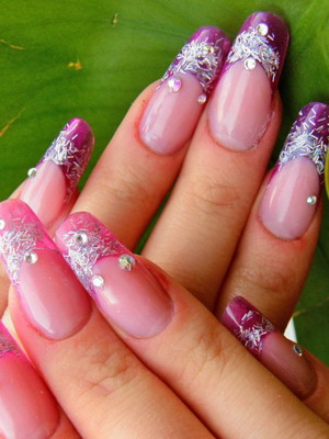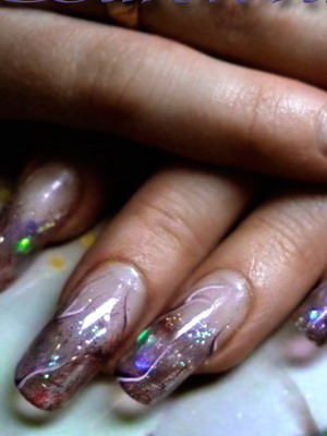 Этот декоративный прием допустим для натуральных и искусственных ноготков, так как не делает значительно толще ногтевую пластину, при этом дает великолепный блеск.
